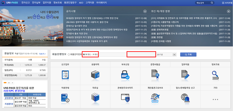 관세청 유니패스에 접속.